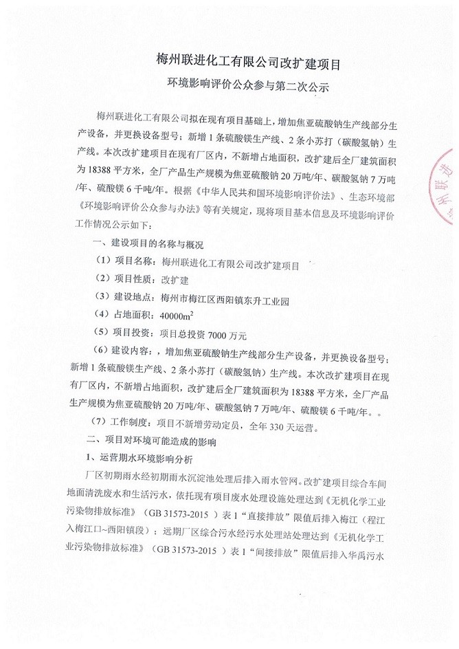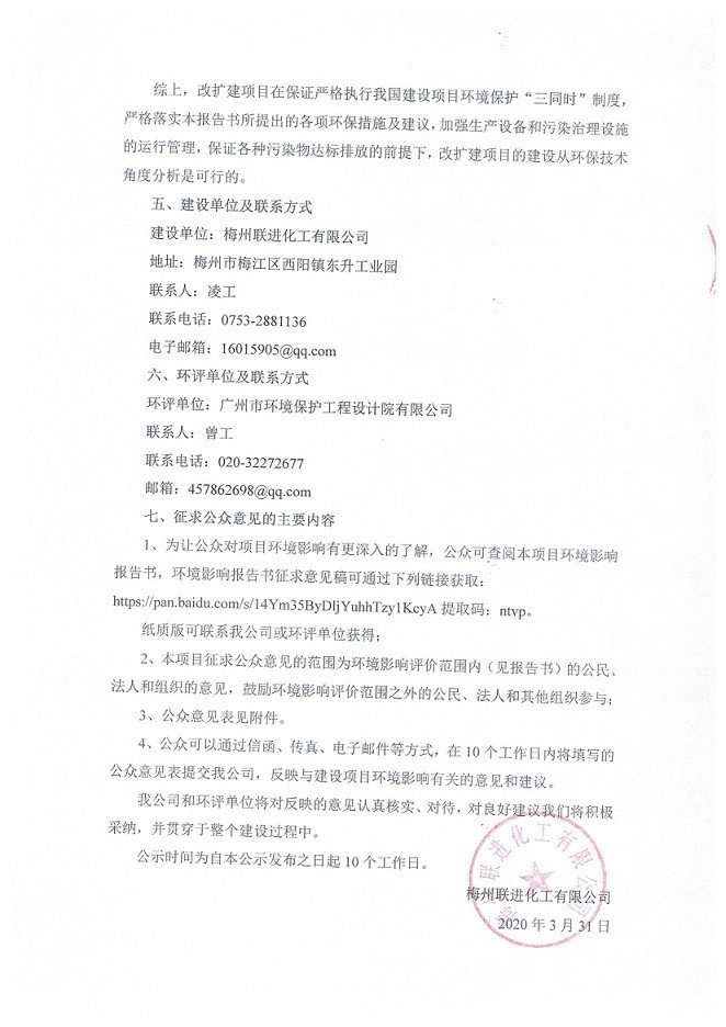 梅州聯(lián)進(jìn)化工有限公司改擴(kuò)建項目環(huán)境影響評價公眾參與第二次公示